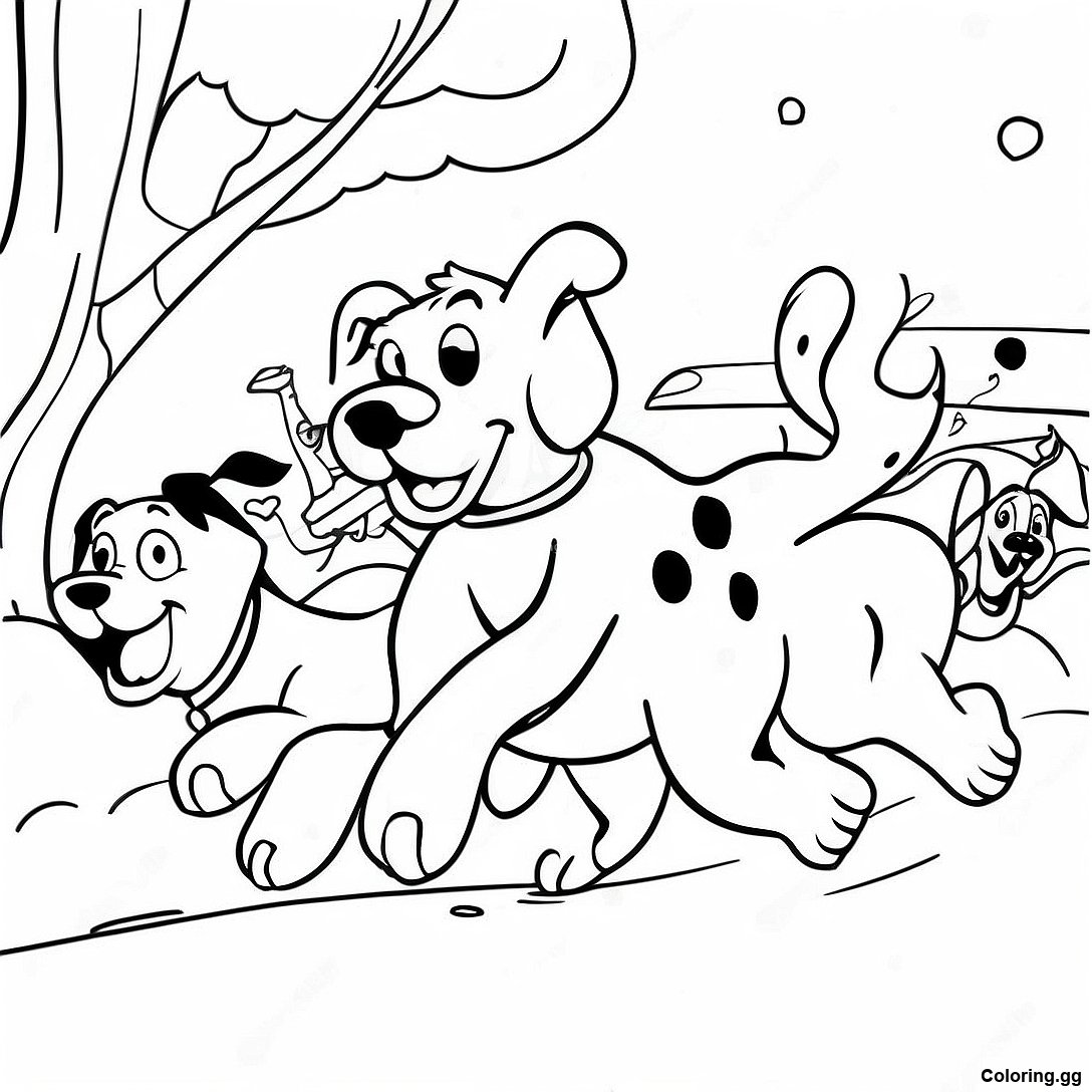 دانلود PDF قابل چاپ از ۱۰۱ دالمیشن در حال دویدن در برف - صفحه رنگ آمیزی