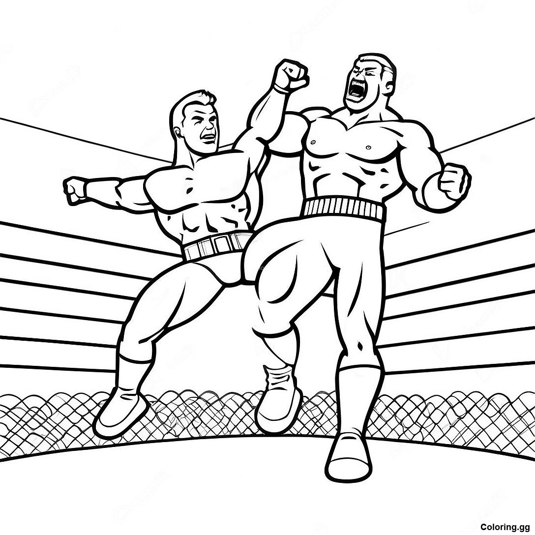 دانلود PDF قابل چاپ از صفحه رنگ آمیزی 3d Wwe کشتی‌گیر در حال پرش بر روی حریف