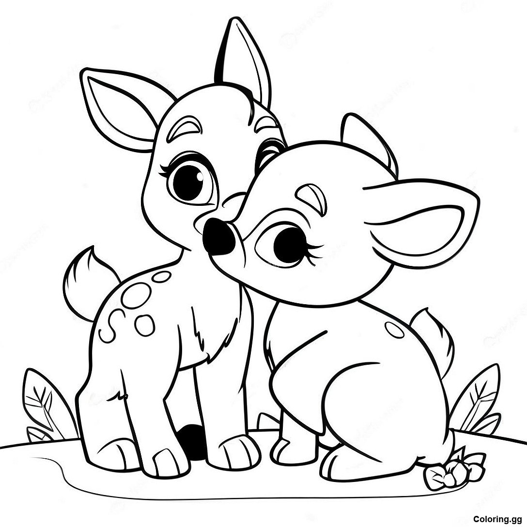 دانلود PDF قابل چاپ از صفحه رنگ آمیزی بامبی و تامپر در حال بازی