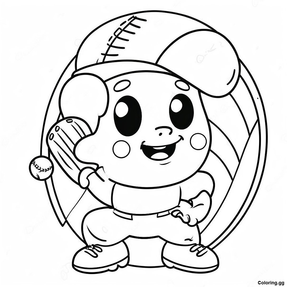 دانلود PDF قابل چاپ از صفحه رنگ آمیزی بیسبال کارتون زیبا