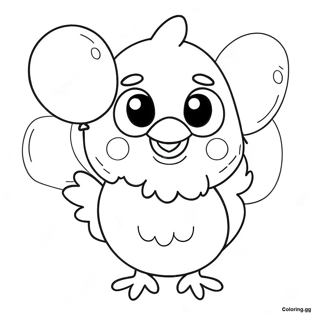 دانلود PDF قابل چاپ از صفحه رنگ آمیزی چیکای دوست‌داشتنی با بادکنک‌ها