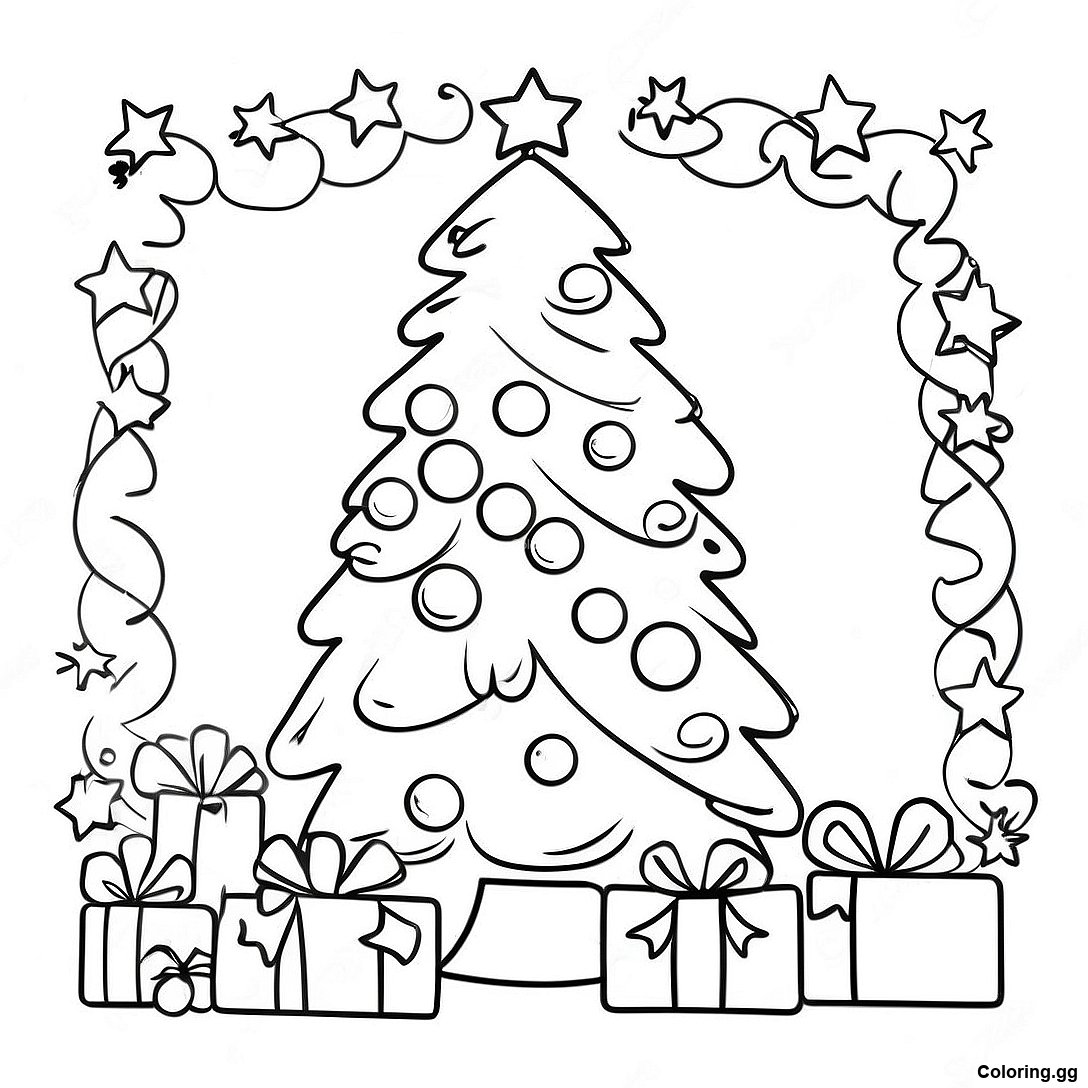 صفحه رنگ آمیزی درخت کریسمس تزئین شده