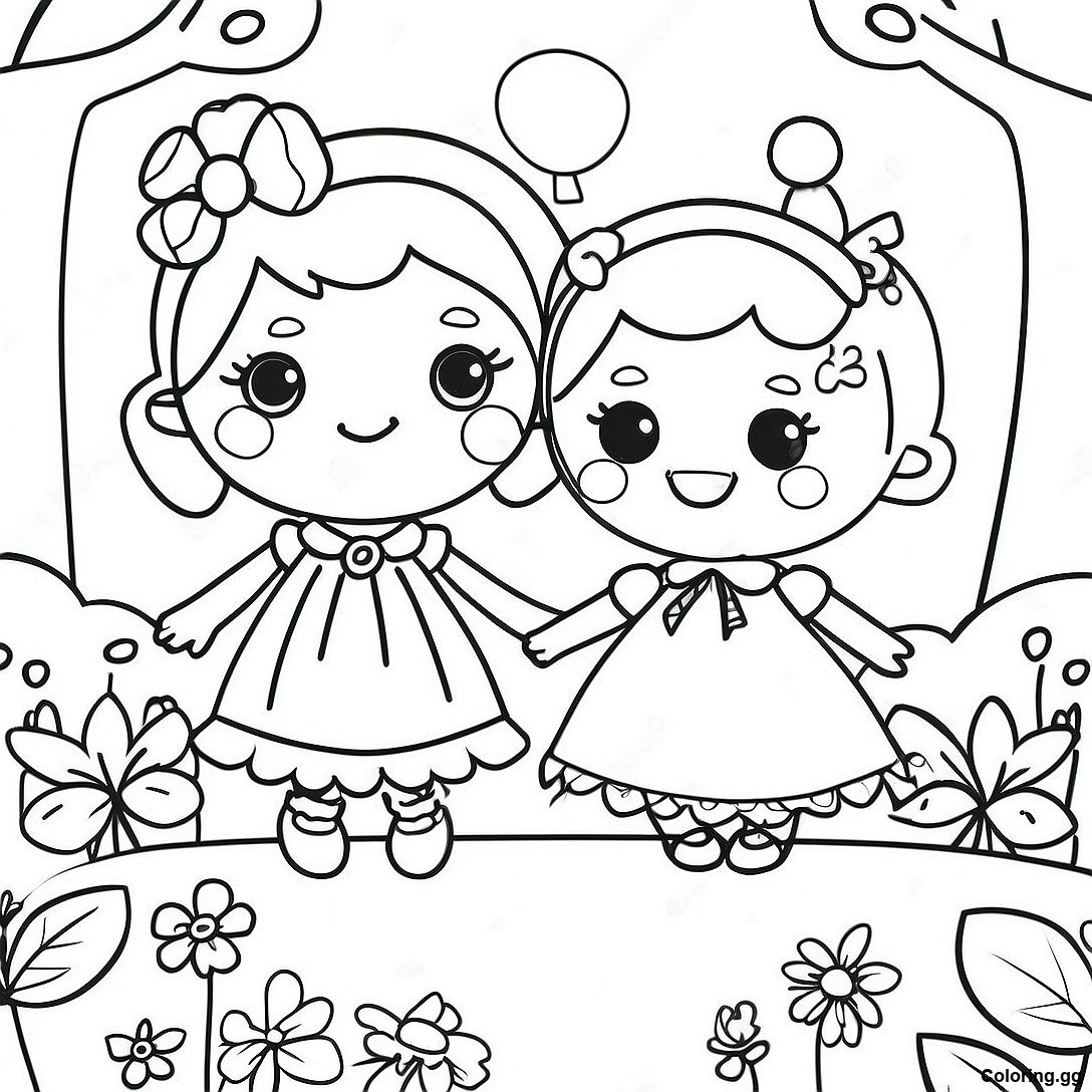 دانلود PDF قابل چاپ از صفحه رنگ آمیزی دوستان لالا لوپسی در باغ