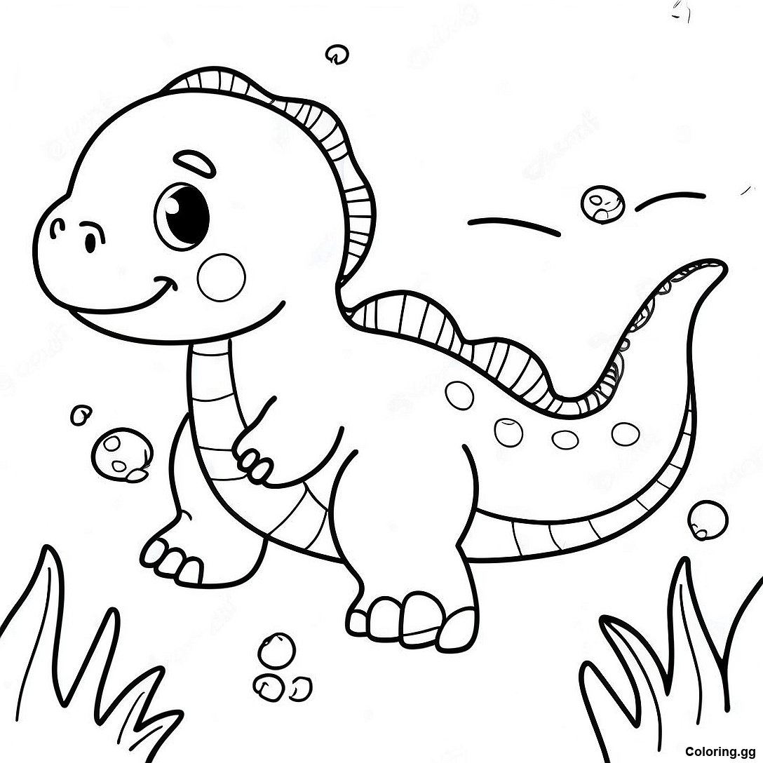 دانلود PDF قابل چاپ از صفحه رنگ آمیزی دایناسور آب دوست داشتنی در حال شنا