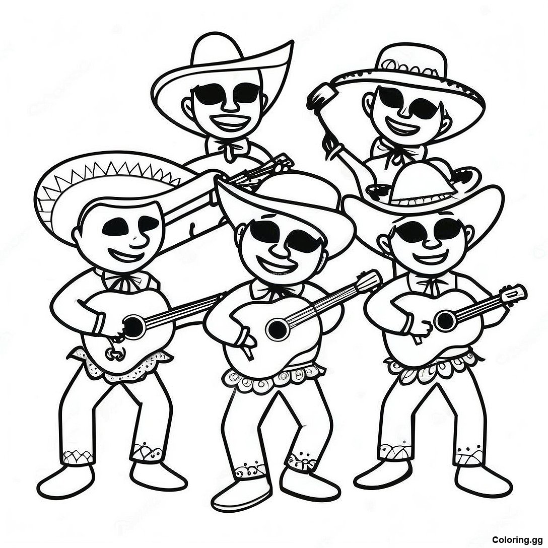 دانلود PDF قابل چاپ از صفحه رنگ آمیزی گروه موسیقی ماریچی رنگارنگ
