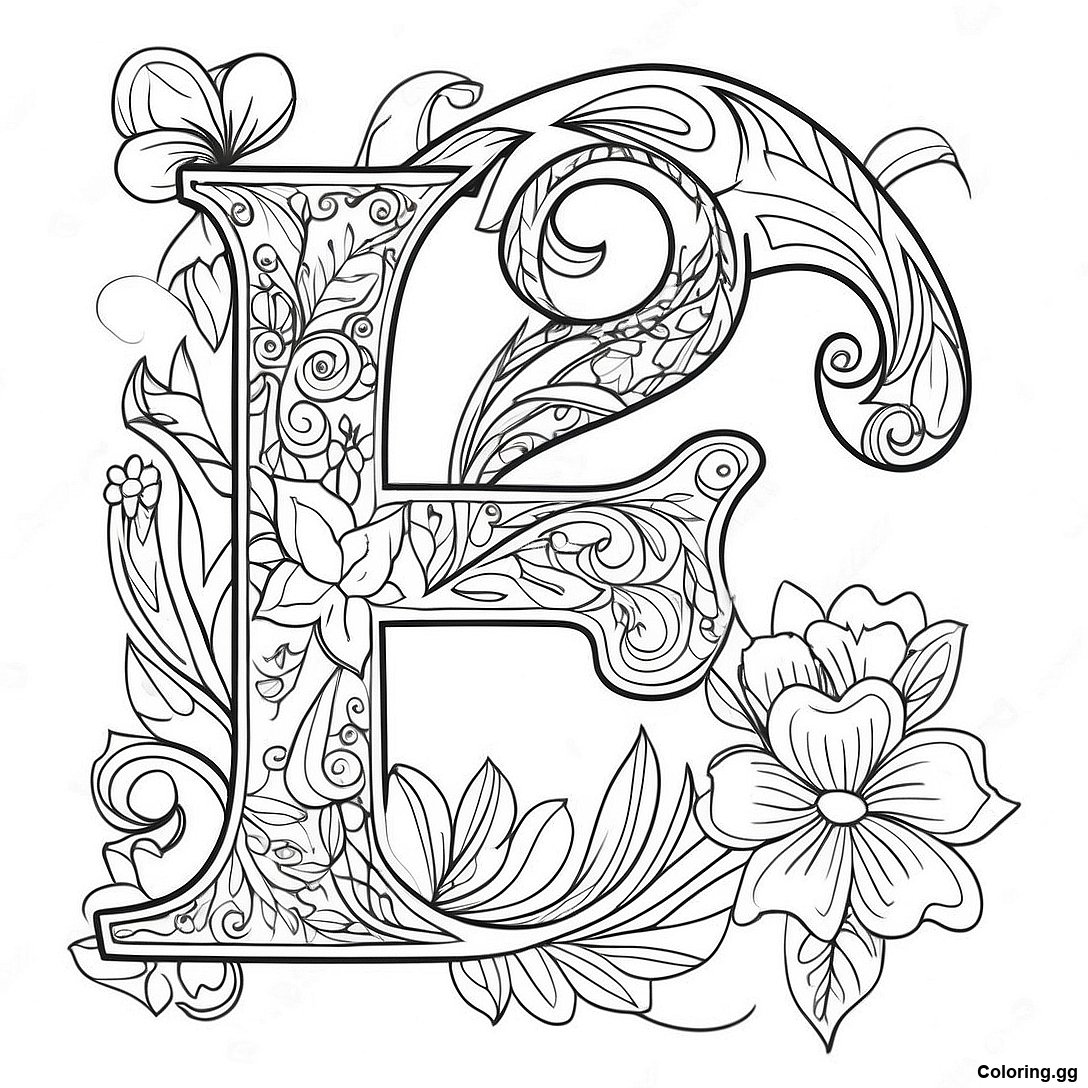 دانلود PDF قابل چاپ از صفحه رنگ آمیزی حرف F گلدار