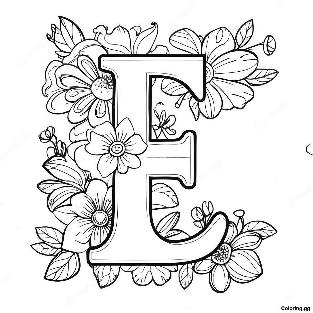 دانلود PDF قابل چاپ از صفحه رنگ آمیزی حرف F گلدار