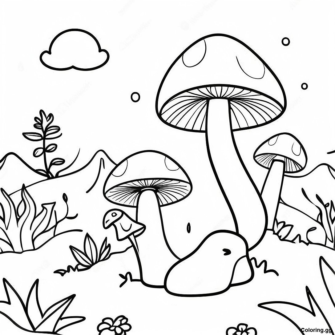 صفحه رنگ آمیزی جنگل قارچ خیال‌انگیز