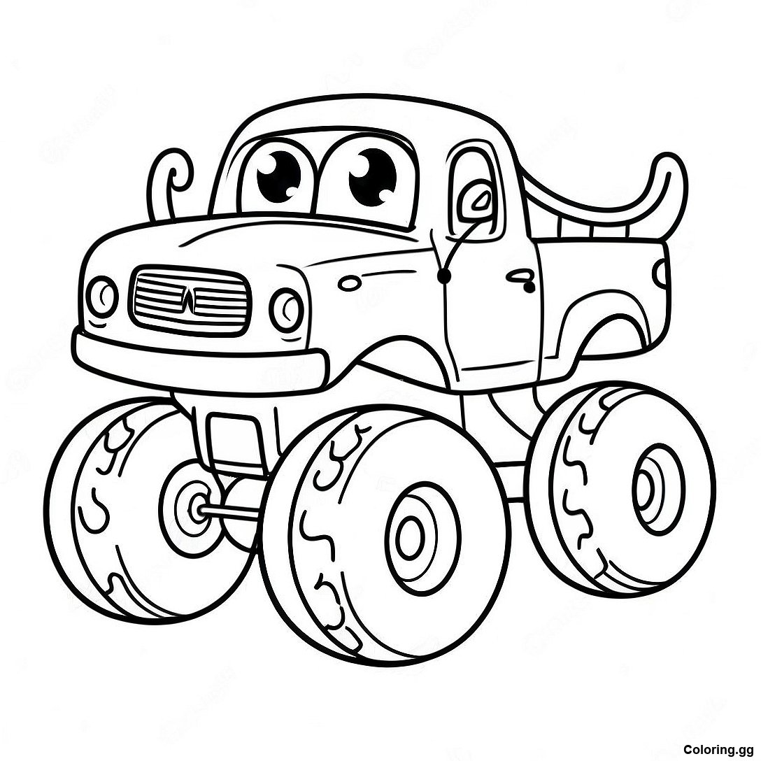دانلود PDF قابل چاپ از صفحه رنگ آمیزی کامیون هیولا دوست داشتنی با چشمان بزرگ