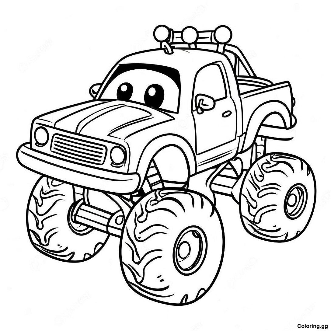 صفحه رنگ آمیزی کامیون هیولا دوست داشتنی با چشمان بزرگ