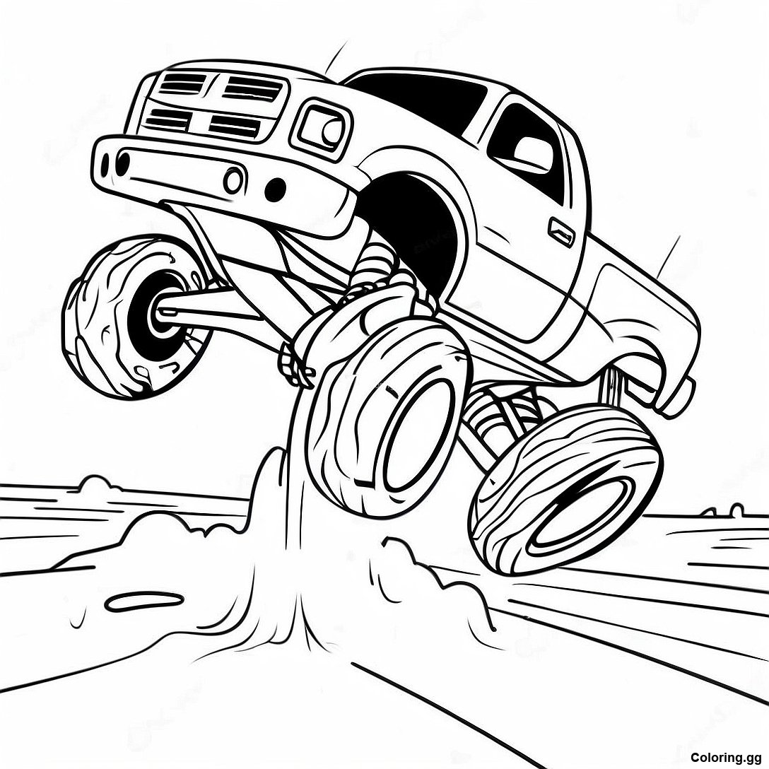 صفحه رنگ آمیزی کامیون هیولا رنگارنگ که از روی ماشین ها می پرد