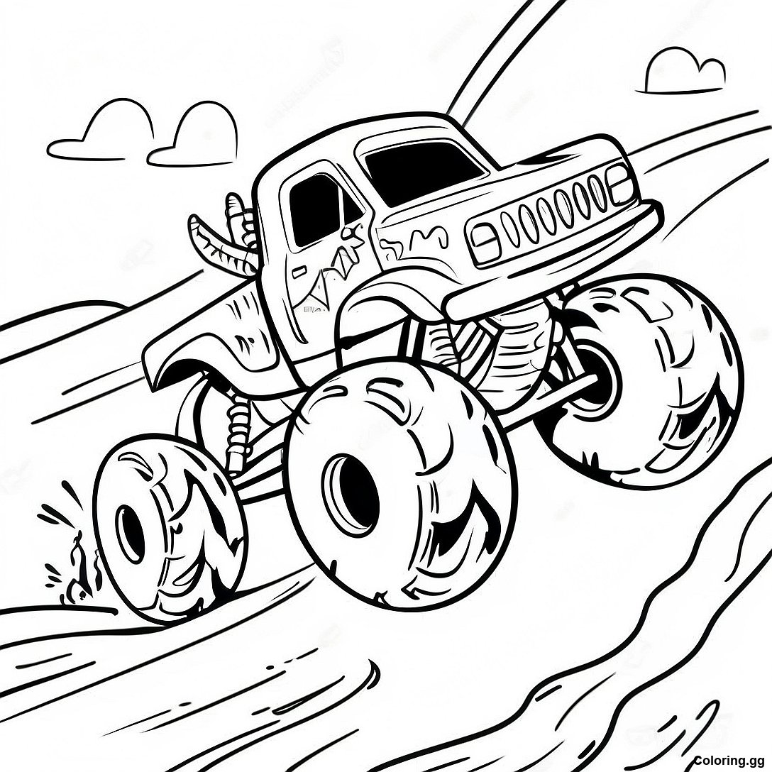 دانلود PDF قابل چاپ از صفحه رنگ آمیزی کامیون هیولا وحشی که از گل عبور می کند