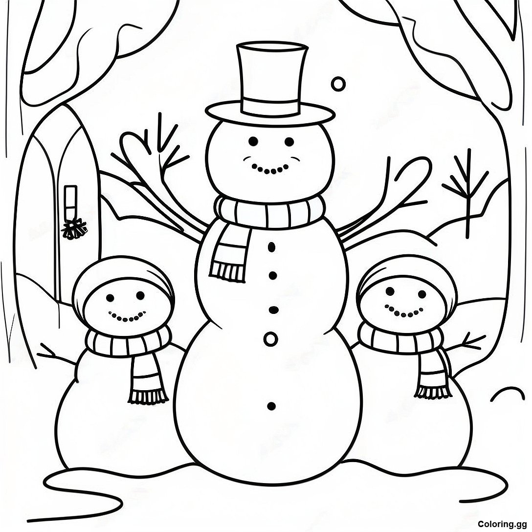 دانلود PDF قابل چاپ از صفحه رنگ آمیزی خانواده آدم برفی در سرزمین زمستانی