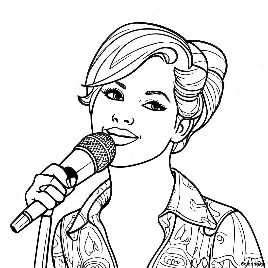 دانلود PDF قابل چاپ از صفحه رنگ آمیزی خواننده پاپ با میکروفن