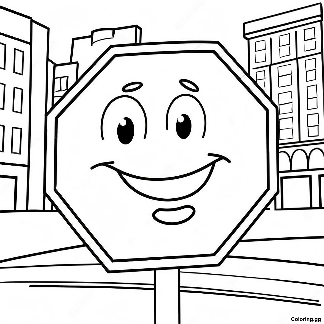 دانلود PDF قابل چاپ از صفحه رنگ آمیزی علامت توقف کارتونی در یک شهر