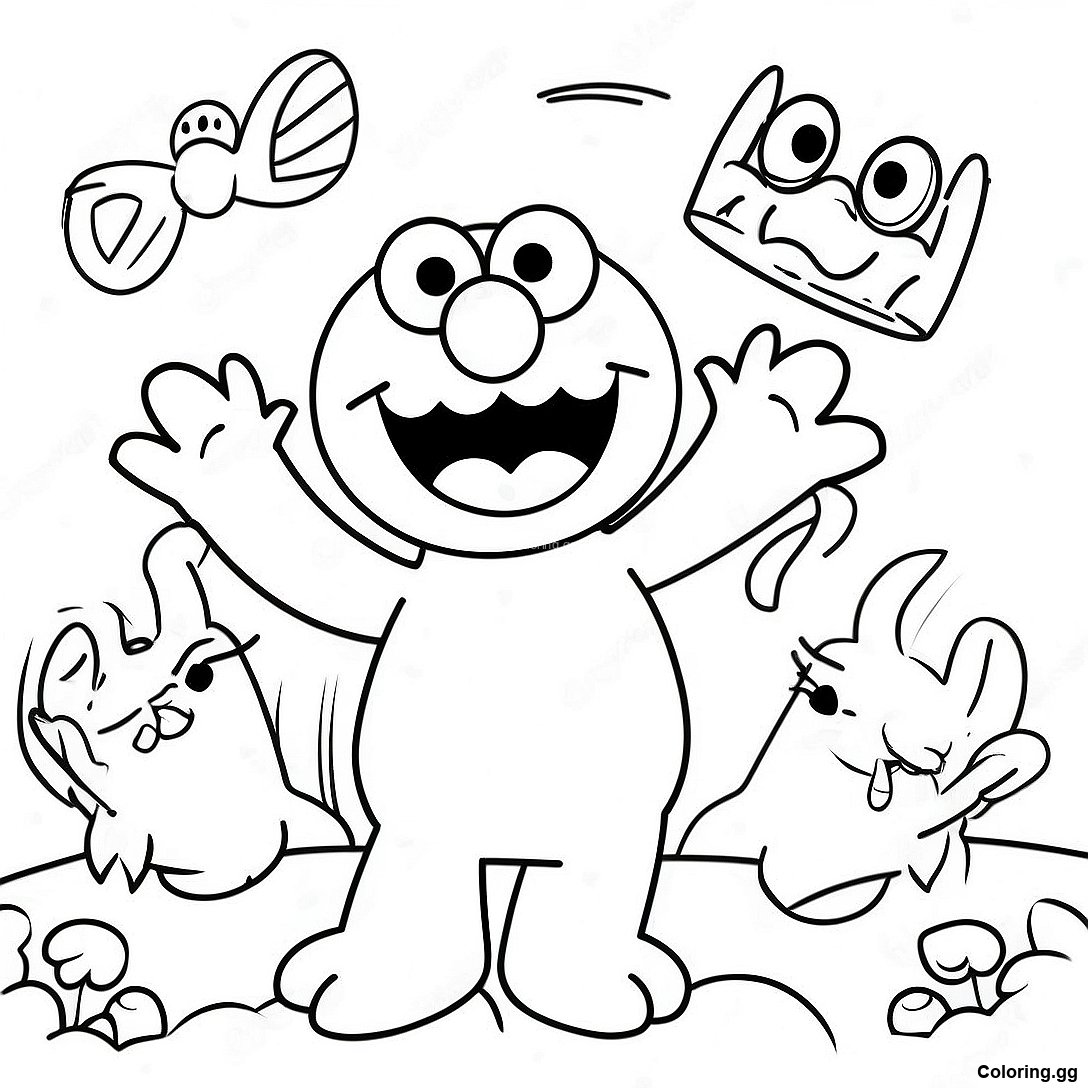 دانلود PDF قابل چاپ از صفحه رنگ آمیزی المو در حال بازی با دوستان