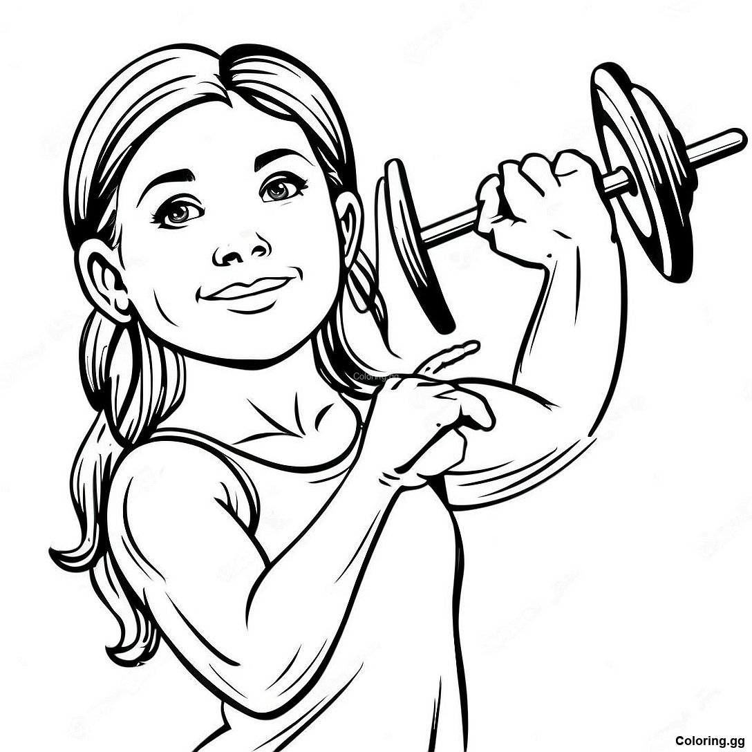 دانلود PDF قابل چاپ از صفحه رنگ آمیزی لوئیزا در حال بلند کردن وزنههای سنگین