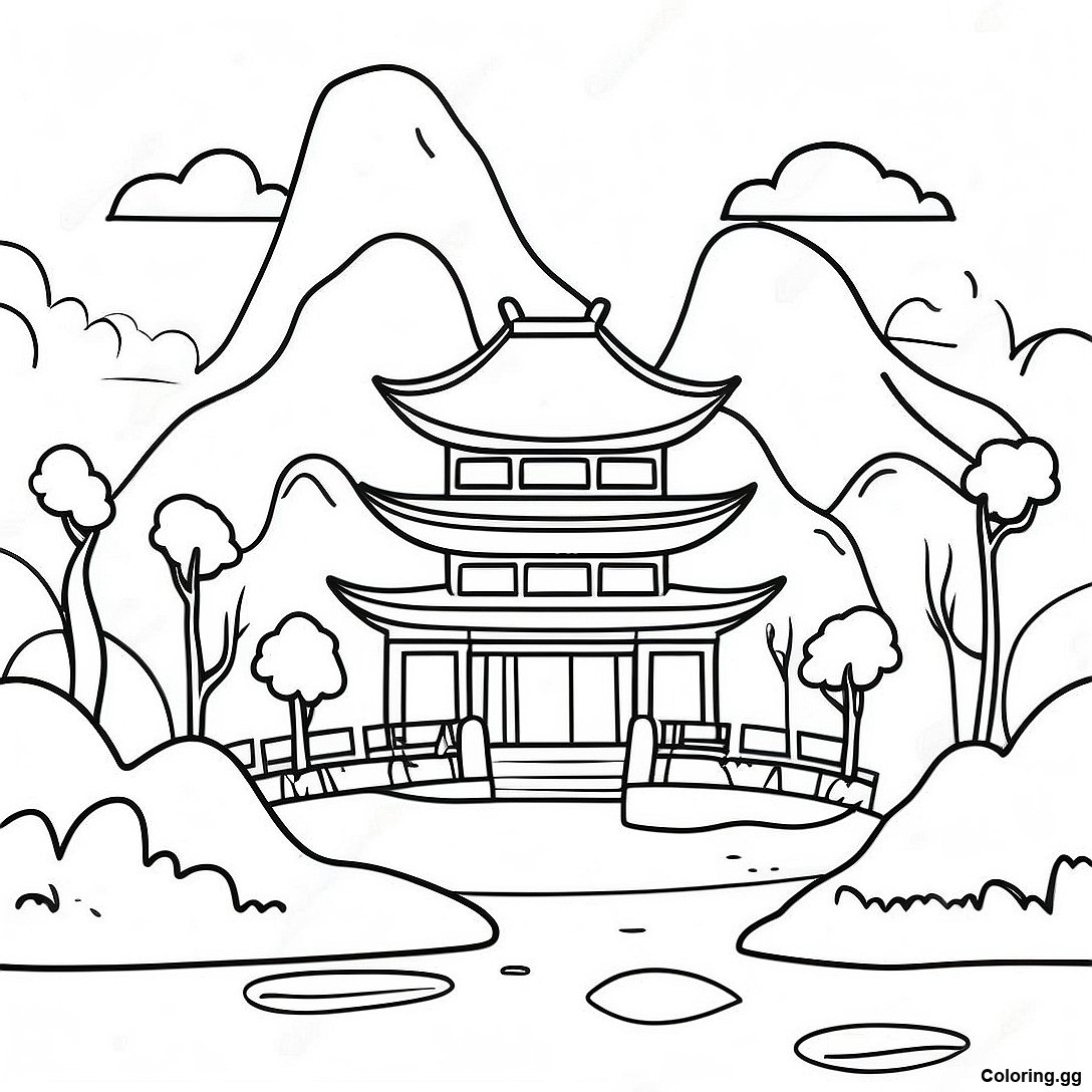 دانلود PDF قابل چاپ از صفحه رنگ آمیزی منظره زیبا از آسیا
