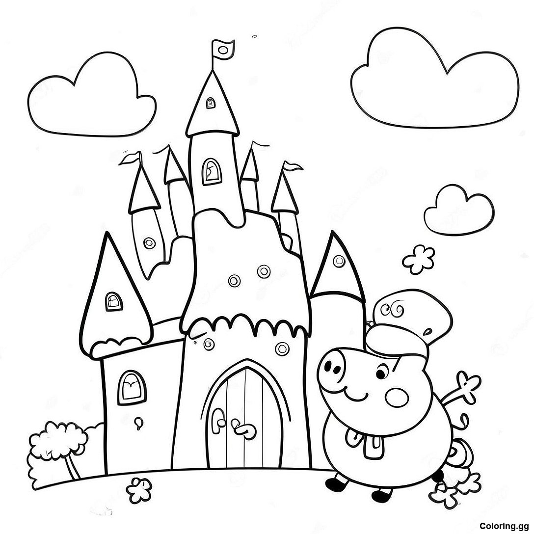دانلود PDF قابل چاپ از صفحه رنگ آمیزی پپا پیگ در یک قلعه جادویی