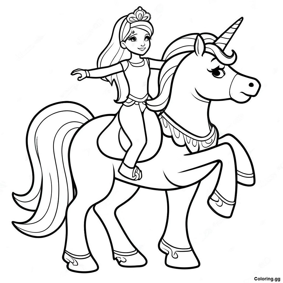 دانلود PDF قابل چاپ از صفحه رنگ آمیزی پرنسس شجاع سوار بر یونیکورن باشکوه