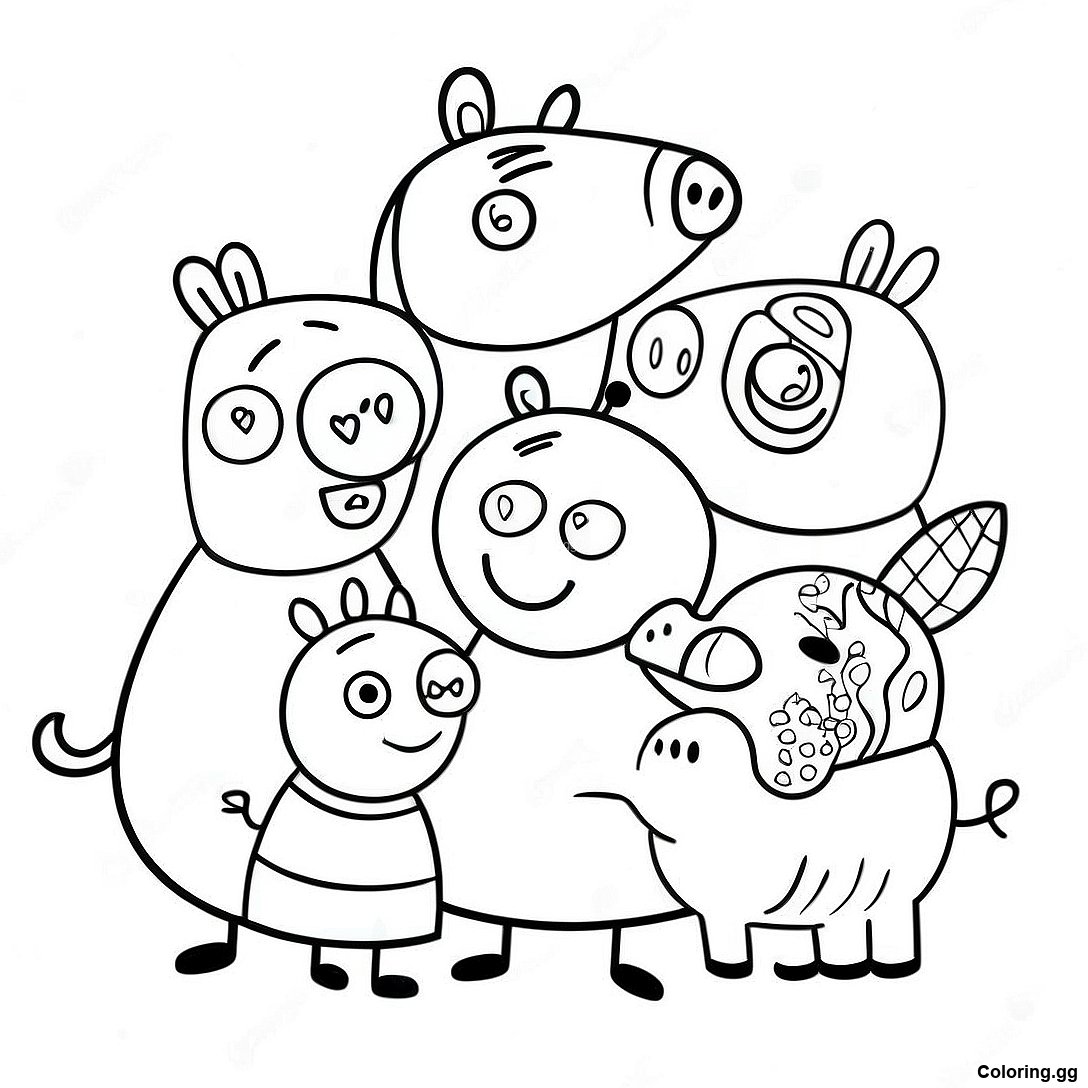 دانلود PDF قابل چاپ از صفحه رنگ آمیزی پرتره خانوادگی پپا پیگ