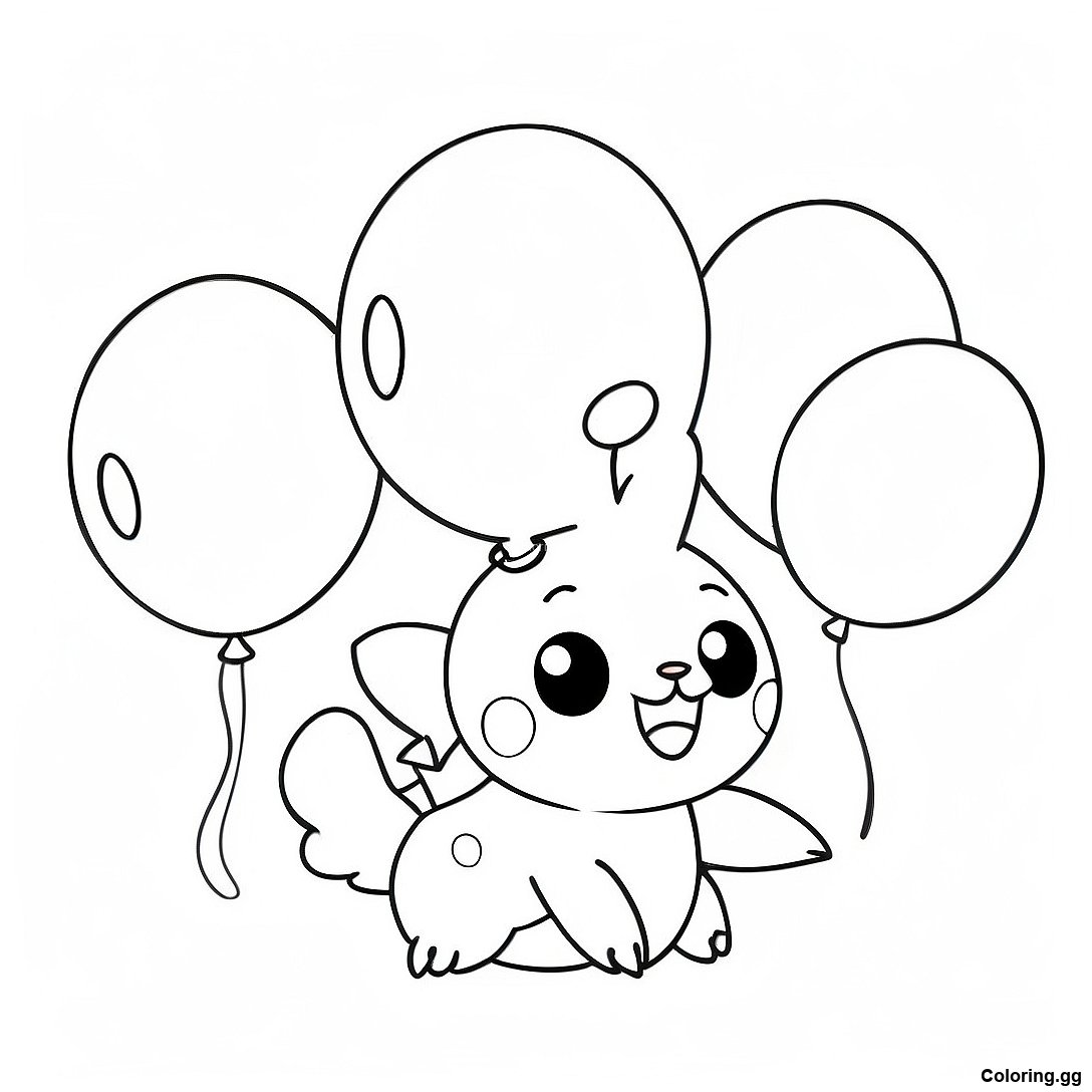 صفحه رنگ آمیزی پوکمون بامزه با بادکنک