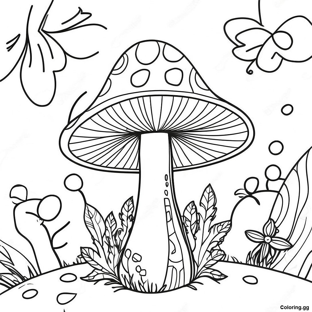 دانلود PDF قابل چاپ از صفحه رنگ آمیزی قارچ رنگارنگ سایکدلیک