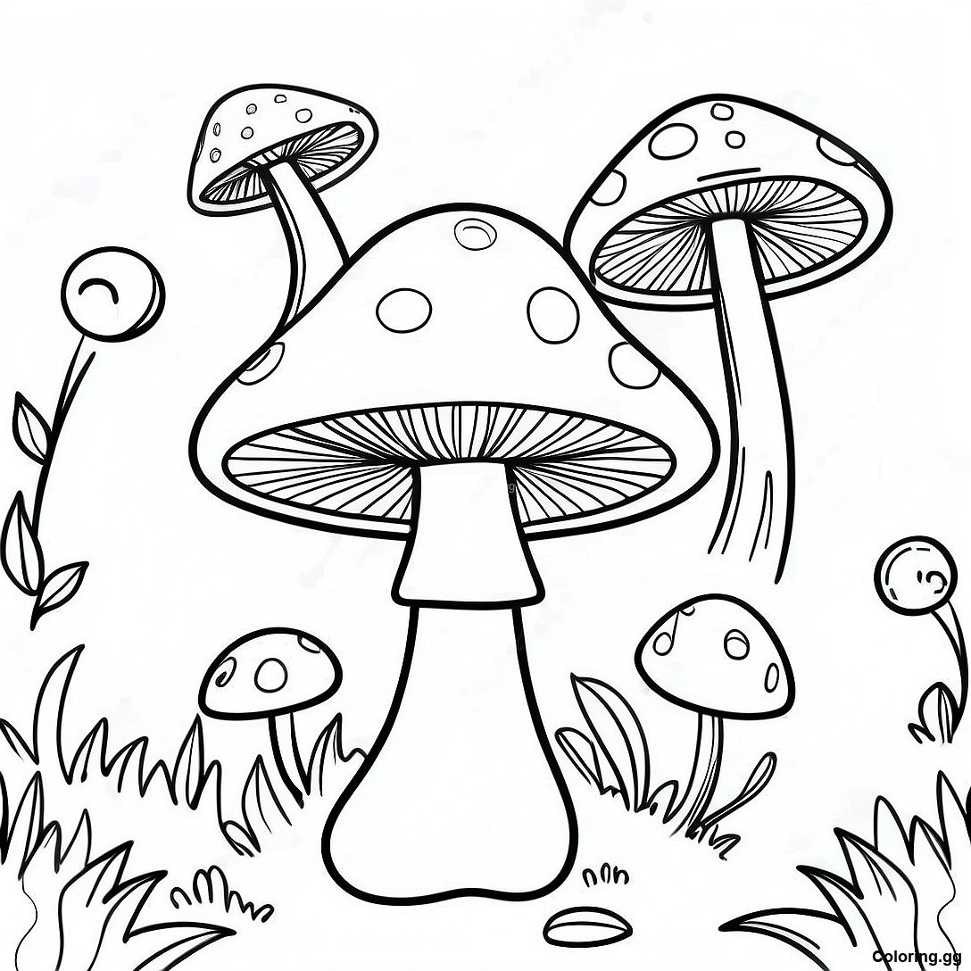 دانلود PDF قابل چاپ از صفحه رنگ آمیزی قارچ رنگارنگ سایکدلیک