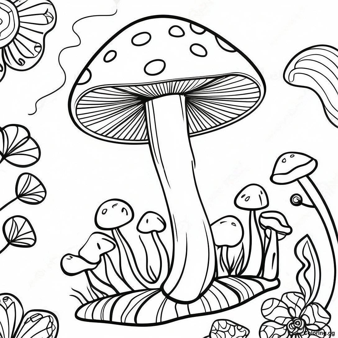 دانلود PDF قابل چاپ از صفحه رنگ آمیزی قارچ رنگارنگ سایکدلیک