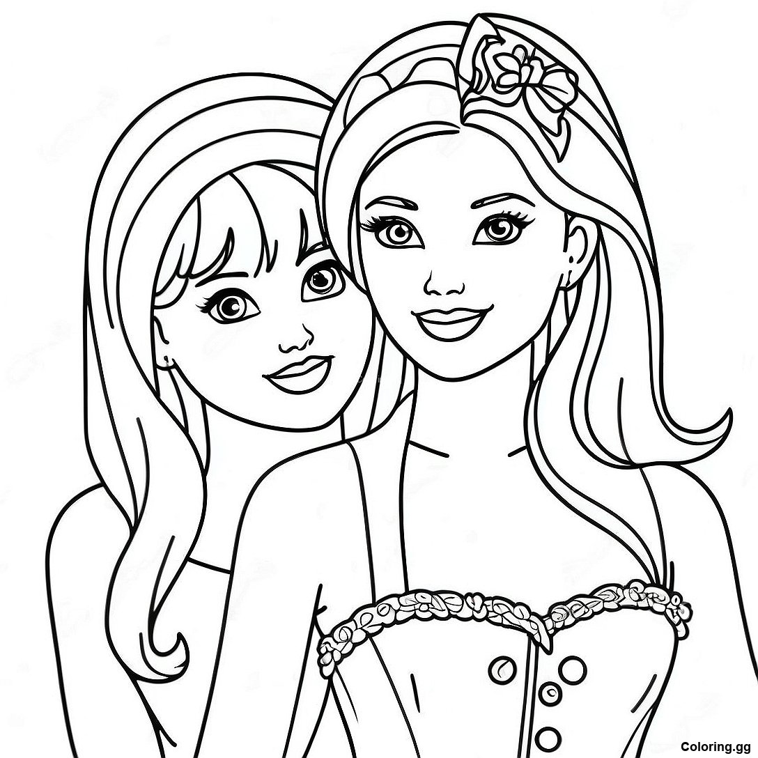 دانلود PDF قابل چاپ از صفحه رنگ آمیزی عروسک باربی با دوستان