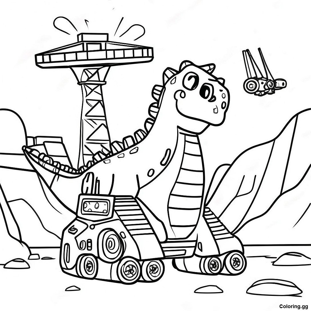 دانلود PDF قابل چاپ از صفحه رنگ آمیزی صحنه ساخت و ساز غول پیکر دینوتراک
