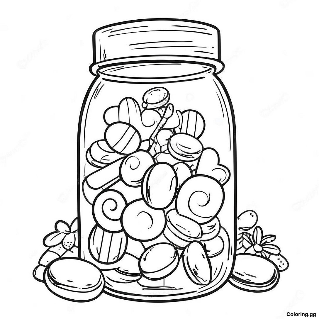دانلود PDF قابل چاپ از صفحه رنگ آمیزی شیشه مِیسون پر از آبنبات