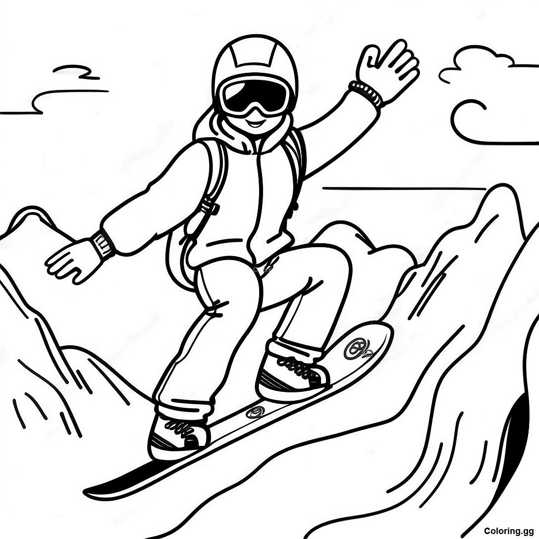 دانلود PDF قابل چاپ از صفحه رنگ آمیزی اسنوبورد سوار جذاب در کوه