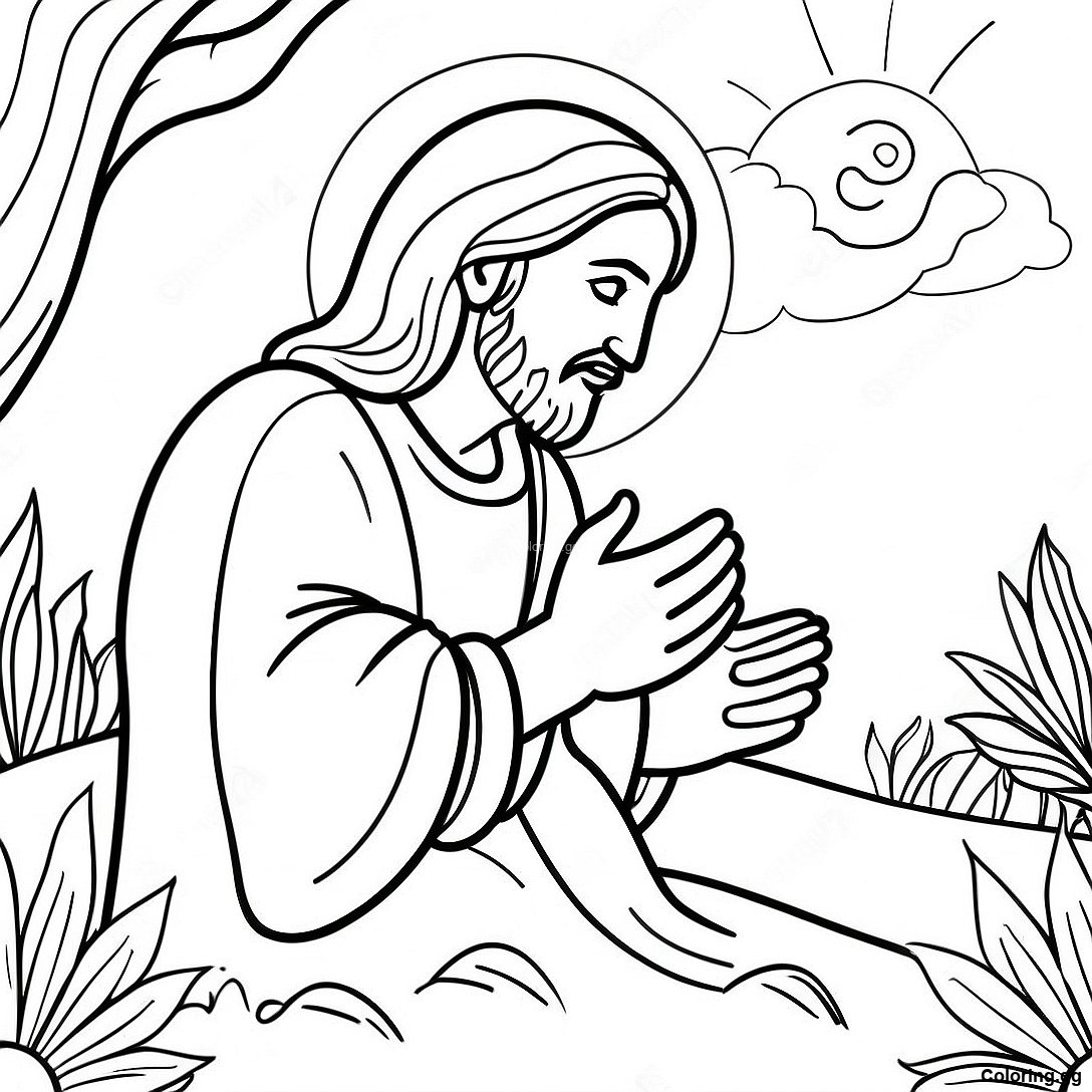صفحه رنگ آمیزی عیسی در حال دعا در باغ